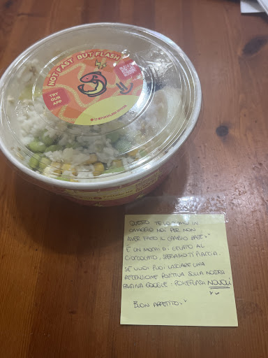 Sono venuta insieme a mia sorella per mangiare un poke tranquillamente, rimprovero la assoluta mancanza di rispetto e poca pazienza che le ragazze portano verso i rider. (Mettendo su discorsi quasi pure razzisti) Ho assistito a una scena che sinceramente mi è dispiaciuto parecchio( più per il rider che non parla italiano invece di quelle due ragazze buttate lì a lavorare frustrate e facilmente irascibili verso il prossimo) Questo rider essendo straniero per capire cosa stesse dicendo la ragazza, le ha passato un suo amico in chiamata che ha intrapreso il ruolo di traduttore che giustamente le ha dato dei consigli per trovare prima l’ordine, un dialogo che si è sfociato in un malinteso poiché la ragazza ha iniziato a vociare con parole tipo “ sto perdendo già tempo qui non darmi ordini etcc” ovviamente il traduttore si sarà sicuramente espresso male poiché anche lui non è italiano (essendo pure in viva voce si e sentito come si stava esprimendo) ma le sue intenzioni non erano cattive. Per me è la prima e ultima volta, le ragazze fanno affidamento tra loro per crearsi una ragione, andando contro tutti, facendo passare i clienti per il torto, malintesi nel mondo del lavoro ci sono, esistono, ma le due ragazze non sono capaci di affrontarli in maniera gentile e matura. Tutti si rispettano...