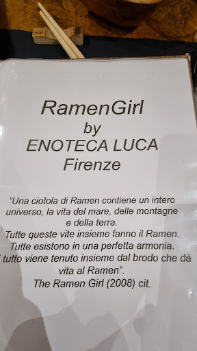 Read moreDa tempo sento parlare di questo locale e ieri sera, trovandomi in zona, ho colto l'occasione per provarlo con un amico. Arrivati nel luogo indicato da Google Maps si rimane un po' spiazzati, trovandosi di fronte una elegante enoteca e non un locale con arredamento in stile giapponese, in genere straripante di ideogrammi, statue e bambù; rassicurati dall'insegna entriamo. Ad accoglierci c'è il sorriso della Sig.ra Miyako che ci accompagna al tavolo, illustrandoci poi i vari piatti e proponendoci vari accostamenti con le particolari birre artigianali "Tosco-Orientali" disponibili sulla carta. Devo dire che sfogliando il menù sono trasalito quando lo sguardo si è soffermato sui prezzi, più che raddoppiati rispetto a quelli che di solito ci si aspetterebbe. Rimaniamo comunque ingolositi dai piatti proposti sul menù, ridotto e modificato rispetto a quello disponibile sul sito per il periodo estivo, ed ordiniamo 2 Buta Kimchi Ramen (con aggiunta di uovo sodo) ed 1 Honetsuki Abaraniku da condividere. Arrivati al tavolo i piatti appaiono molto invitanti ed al gusto sono una sinfonia di sapori, di sicuro il Ramen più buono che abbia mai mangiato fino ad oggi; squisite anche le costine di maiale glassate, con sentori che spaziano dal dolce all'amaro dell'arancia, tanto che ci siamo divorati anche le guarnizioni (un paio di costine in più non sarebbero dispiaciute vista la spesa 😅). Al momento del conto sono stati molto gentili nell'offrirci una tazzina di sakè di commiato (consiglio la versione "piccante") e, nel corso di una piacevole chiacchierata con il Sig.Emilio, anche un assaggio di whisky giapponese. Nel complesso prezzi molto più alti della media (penso sia anche una conseguenza del contesto economico attuale) ma giustificati dalla qualità delle materie prime, dalla loro ottima lavorazione e dal piacevole contesto; con questi prezzi purtroppo non potrò esserne cliente abituale ma saprò dove portare chi vorrà assolutamente mangiare, ad ogni costo, il Ramen più buono di Firenze...sto già mettendo i soldi da parte per quando sarà disponibile il Ramen al...