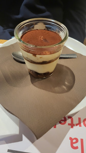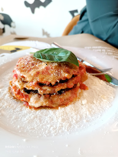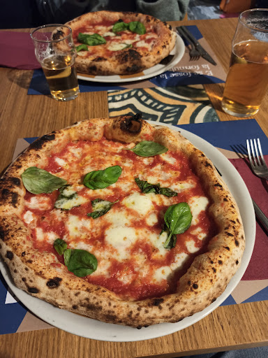 If you want an interesting pizza, this is the place!! Went inside as soon as they opened because we were starving, and it was the closest thing that was open. We hit the jackpot!! Really friendly staff, that helped us choose the dishes (we wanted a starter and he said not to take it because it is too big for 2 people if we plan to take 2 pizzas, which we did). So we started with the eggplant parmesan. My partner was craving this and I eat anything. Layers of eggplant slices in an amazing tomatoes sauce, with parmesan cheese, all in the oven. Simple but cooked perfectly!! A great appetizer. For the main course we took 2 pizzas that looked interesting and unique. The first was called figs and porchetta. It's a pizza with slices of porchetta and potato chips (yes, like the ones in a bag), and everything is covered with a drizzle of balsamic fig reduction. What a combination!!! The porchetta was perfect, the chips give a surprising crunch, and the figs give a light sweetness, all on a masterfully made pizza dough. Be adventures and try it!! The second pizza we took was called "the new from the pan". It had mozzarella and caciocavallo cheeses, ham, and croquettes. Even though the croquettes made the pizza a little too heavy, it was still great. The cheeses are an amazing paring to the ham, and again, the dough is phenomenal! For dessert we ordered the cannoli and the crostatine. The dough on both desserts was excellent, and the cream inside was textbook classic!! Perfect ending to an awesome dinner. We paid €58 for the food with 2 glasses of wine, a bottle of sparkling water, and 2 coffees, which I think was a good value for money. I will definitely be back, and I highly recommend this restaurant.