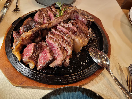 Read moreTo celebrate the last day of 2024, I visited with a friend at 7:30 PM and ordered T-bone steak (medium) & shrimp risotto. The T-bone steak was written as 100 euros/1kg, but since it was for 2 people, it was later printed as 150 euros on the receipt. They didn't even tell me that 2 people would get 1.5kg.