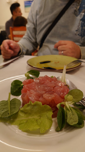 First time: perfectly cooked baccala (fresh cod, not to be confused with salted cod) in a spicy tomato sauce. Light, crispy cod filet pieces in a slightly spicy tomato sauce with chick peas in olive oil as a side dish. Cheese cake with fruits for dessert. 2nd time: Octopus with potato cream, ginger and citrus, bisteak with porcini mushrooms, white beans in garlic sauce, dessert: mascarpone filled cannoli with toasted pistachios. This is a family owned restaurant and the staff/owners answered our questions about ingredients and preparations enthusiastically. Very enjoyable experience, so good we came 2...
