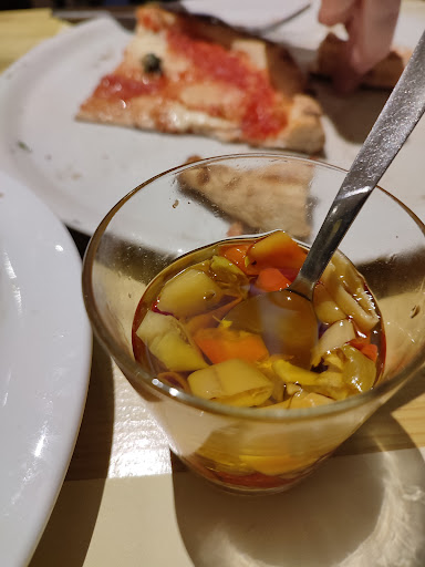 Read moreWelcome drink (sparkling wine). Friendly staff, good menu with pizza, seafood and more. We took a pizza, grilled calamari and 2 side dishes. Everything fresh and tasty, best pizza we had so far in Florence (and we tried a lot - the thin dough is not as soft and elastic as the Napolitan style but I prefer it that way). Beware that if you ask for spicy oil, it's very spicy (and looks 100% self made, which is rare even in good pizerrias). Just that you know: I expected more calamari for 16 euros (4 full ones, body + tentacles) but I guess this is the price to pay for fresh seafood. The pizza Margherita was...