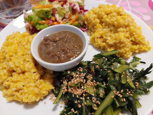 I went there in March and again in January. There were more people in March, which means you have to make a reservation. In January, although it's not as busy, many older locals come to eat and it seems like everyone knows everyone, it's super homey and cozy. Very vegan friendly! I also like that right next to it there's a grocery store and a green living store, and across the street there's a library and a park. Once in a while there's even a mini market across the street! So don't just come...