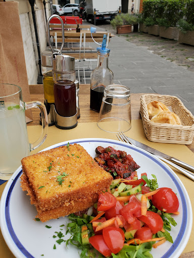 I went to Ruth's tonight for some iced tea, a mozarella cheese fried sandwich with breadcrumbs and an Israeli salad. The very kind owner has worked for the Jewish community for ages, and I am so impressed that he was able to keep the restaurant open even during the pandemic. He's so helpful and sweet and approachable. He's known by the entire Italian community, in which he's very involved. The food there is either dairy or vegan. I asked to sit outside where there were a few tables, and he quickly went to set them up for me there. It was a lovely evening, and it was also nice watching him interact with the locals. He said that he bakes challot for Friday morning, and you can reserve space for meals Friday night or Saturday in advance. Thank you for your years of service with...