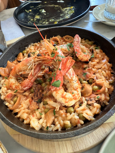 The paella had seafood in EVERY bite. The shrimp were delicately crispy outside and cooked perfectly. This place was elevated the gazpacho. Texture with crisp elements (cucumber) soft (tomato), crunch (toasted bread) was VERY impressive. My prior experiences with Gazpacho have been refreshing but not particularly special. We would normally never order it, but if it were always like this we would order it again! The tasting finished with Churro+Chocolate reimagined. The churros were like little French fries with delicious dipping chocolate. Reminiscent of the hot chocolate and churro from Madrid. It’s difficult to compare 1-to-1 because the churros are different, but they were as good as the best ever churros from Madrid! (Which were a masterpiece) Very...