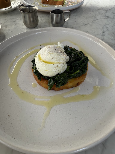 The eggs Florentine was my partner’s favorite ever, and we come from a Brunch-obsessive culture, so there is a lot of competition! We were VERY impressed that every element felt light and airy. The bread was so soft and warm, the crispy crust was not too dense or hard. The eggs cooked perfectly; the yolk had a custardy drip. The egg was patted so the water of the poach didn’t make any soggy elements. The hollandaise sauce felt like they whipped the yolk which gave it thickness without density. Incredible!