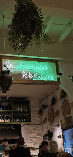 Now the food: I paid, and took one bite of the falafel sandwich. My partner and I love this food and have favourite spots in NYC & Paris. Not here. This falafel is uninspired. I returned the sandwich to the counter, with one bite taken, under the gaze of the owner, the clerk and this deeply disrespectful portrait.