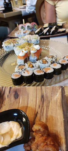 Partendo dal menù, molto vasto (nota positiva), viene dato un menù in carta dove vengono descritti i piatti senza però alcuna foto e, essendo in Italia e non in Giappone, oltre praticamente a costringerti a leggere 130 piatti, rende difficile capire cosa si sta ordinando (che per carità chi va al sushi 2/3 volte al mese bene o male ci tira fuori le gambe, ma tutti gli altri?). Insomma mettere in difficoltà il cliente non mi sembra troppo il caso, aggiungere almeno 1 foto per categoria non costa nulla (e anzi verrebbe ristampato un menù nuovo anziché di quello stropicciato che viene dato). Per le ordinazioni poi ogni cliente è costretto ad usare il cellulare per scriversi il numero degli ordini; non viene dato infatti nemmeno un foglio di carta per poter ordinare (anche se come minimo ci dovrebbe essere un pre-stampato) ma viene direttamente il cameriere e si inizia una bella partita di tombola tutti insieme. Chiudendo un occhio sulla discutibile velocità dell'ordine parliamo del sushi. Molto carini l'impiattamenti ma come prima ci fermiamo alle apparenze. Tutti i piatti in plastica e la qualità delle materie non so bene come giudicarla. Il sapore solo inizialmente risulta piacevole; più che si mangia più che risulta nauseante ma soprattutto pesante. Non so se era il pesce o il riso ma qualcosa non andava. Un sushi che non soddisfa fatto parecchio male. Per la soia ho un commento tutto suo. A parte ad essere immangiabile perché troppo salata, troppo invadente, le bottigliette brandizzate sono quasi inutilizzabili: provi a metterla piano e ti finisce sul tavolo per l'effetto coanda, provi a metterla più decisa e schizza da tutte le parti. Stessa cosa con l'acqua essendo anch'essa brandizzata. La bottiglia non sigillata (anche perché sennò come la mettono l'acqua del rubinetto? e figuriamoci di comprarle sempre nuove poi) meglio non farla sentire ai Nas. Volendo essere ancora più puntiglioso, dato che pure i condizionatori erano colorati per essere abbinati al locale, consiglio di prendere delle bacchette non in legno, rimane solo quello come anti-estetic. Infine il personale ci prova inizalmente ad essere gentile ma quando capiscono che (forse) non ordini più non ti levano nemmeno più il piatto finito dal tavolo.