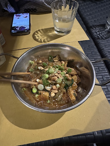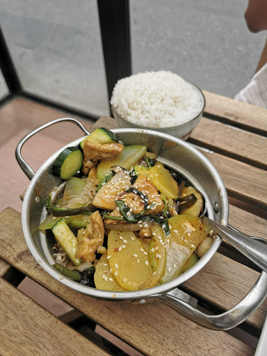 An excellent and interesting variety of Chinese/Asian vegetarian meals on the menu, but sadly most had been crossed off. Our experience was one of very slow service, confusion over the order, long time to bring the food, some irritated and loud, drunken customers and a lack of rice, which they had run out of. Two very young people were trying desperately to manage the situation in the front end of the restaurant, but they looked overwhelmed and exhausted, and were not attentive so I had to go to the counter four times to ask for things. The food we eventually received was very tasty; fried aubergine in a savoury sauce and stir fried vegetables and tofu in a secret sauce. The savoury rice we ordered was replaced by boiled noodles. I think our experience may not have been typical, reading other customer reviews, just...