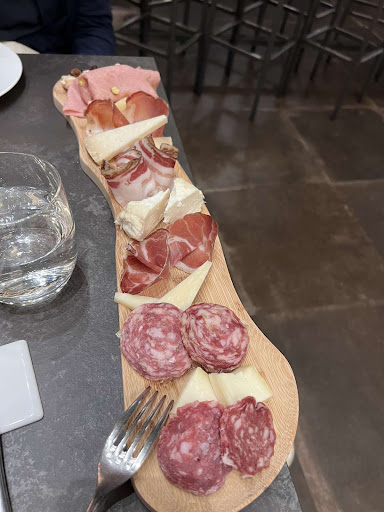 A young, dynamic team runs this beautiful restaurant in the San Jacopino neighborhood. The place defines itself as Cucina di Quartiere (Neighborhood Cuisine) and as we went for dinner on a Monday we found a lively mix of families, business people and students. The rooms are beautifully and tastefully decorated with great attention to details and cleanliness. The open kitchen and a take-out counter greet the guests at the entrance offering an inviting preview of some menu items. We sat in the large outdoor patio framed by green shrubs and comfortably ventilated. The restaurant offers a regular menu including several revisited Tuscan and Italian specialties as well as the daily specials listed on a board. With the help of waitress Claudia, who was very friendly and efficient, we ordered a Tagliere per 2 (An assortment of cold cuts and cheeses for 2) and the Acciughe fanno il pallone (Spanish anchovies in olive oil with salted butter and toasted sourdough bread). All the bread served in the restaurant is made daily by Andrea, the chef, and it's delicious; the cold cuts and the cheeses came from local organic farmers and were of top quality, a whole different experience from what is often served around Florence; the anchovies were delicate and only lightly salted so that they combined perfectly with the salted butter and the sourdough. The wine which Claudia had recommended was a delicious and refreshing Pivuàn rosé from the Marche. Following the appetizers we both ordered the Polpo Croccante (Grilled octopus on a bed of squid ink infused mashed potatoes) which was not only excellent both in flavor and consistency, but was also beautifully presented. In fact at Tecum a minimalistic elegance is noticeable in many details from the presentation of the dishes to the choice of the plates and boards in which the food is served. As a side we had some Agretti, a typical Italian spring vegetable which tastes like a zesty spinach and is rarely served in restaurants. For dessert we ordered the Lemon tart and the Tiramisù, both very tasty, artfully presented and rigorously home made. Overall a very positive experience that shows how quality and dedication combined with the desire to establish a neighborhood presence outside of the predictable routes of the center can be a winning combination. I wish I had a Tecum in my...