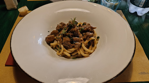 We both had spaghetti, but mine had wild boar ragu. I've been hunting wild boars for years and i know how difficult it is to cook it right, and this was probably the best wild boar i've ever had. It was so tender and very strong in flavour, just so perfectly cooked it almost made me cry. Props to the cooks! Then we had tiramisu for dessert and same story. It was so good.