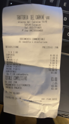 Absolutely DO NOT recommend for Americans. Everything started off nicely when they sat us without a reservation and let us pick a table. Then it all went wrong, in that it became clear they were not willing to serve us because we were American. It’s a very small restaurant, as most are in Florence, and our table was literally in the middle of the room as soon as you entered from outside. Yet despite this, no one came to our table for at least 20-25 minutes. Staff looked at us multiple times and then looked away and attended to other customers. The bartender, who watched us sit there, literally picked up her phone every time we made eye contact as I looked around the room for a server. Then two Italian women literally came in 5-10 minutes after us and, as the waiter walked by our table and smiled at us, he went and got bread and water for them and we still sat there waiting. After about 20 minutes we finally asked the gentleman who sat us for water, which he brought. He then came over and demanded our food order. We asked to order drinks first and he seemed frustrated but took our order. Then we had to ask for some bread, at which point he became very annoyed and made a comment to us about it effectively being wrong to ask for bread before ordering food (mind you there was no problem with them doing it automatically for the women who came in after us). At that point I looked around and noticed that everyone getting service was speaking Italian, which is when it occurred to me that the only difference is that we were not. So we decided to pay and leave as it was clear that we were being treated differently (and to be clear, we have been in Florence and other parts of Italy for weeks and have never had this problem anywhere else). Then a man (presumably the owner) approached and was incredulous that we were leaving and, when we tried to explain, he just shrugged like he didn’t care. I get that this is a different country with a different dining culture but, as I said, we never had that problem at any other place or time. Good luck to any travelers that decide to still give this place a try but, in a city FULL of wonderful restaurants and eateries, there really are other great options “right around...