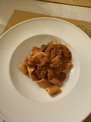 The service was spectacular, Andre did a wonderful job presenting us our wine and food, even bringing us out our steak before it was cooked to see. My fiancĂ© and I ordered the Tagliere di pecorini con miele d'acacia to start, which was a delicious pecorino cheese platter with acacia honey and walnuts, then split the Pappardelle al cinghiale which was a fantastic starter with perfectly cooked wild boar and a incredible sauce, and to finish we got the quintessential Bistecca alla Fiorentina, the Florentine T-Bone steak, dry aged and perfectly cooked and brought out on a searing platter to add extra char if you preferred. Genuinely, we have been in Florence for 2 days, Italy for 6, this is the best meal weâve had.