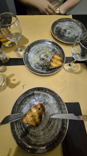 Started off good, wood fire was delightful, until the employee threw a plastic cup into it sharing a terrible burning plastic smell. Bread was tasteless. I had to ask for a plate for oil and vinegar. Didn't help the taste of the bread. My husband ordered picca or something... The spaghetti looking pasta that's thicker with a hallow center... It was hard. Not aldante...Hard. I ordered spaghetti and got " pasta fresca" which was a fettuccini type noodle. When I questioned, they simply said, oh yah, we're out of spaghetti. No apologies, nothing. They cleared my half eaten plate without asking if I wanted to take it with me..I didn't. So whatever. But rude. Honestly, we've been traveling in Italy a week now and have experienced some amazing Italian food. This was NOT. I would not recommend this place to anyone. Can't understand at all why they have so many...