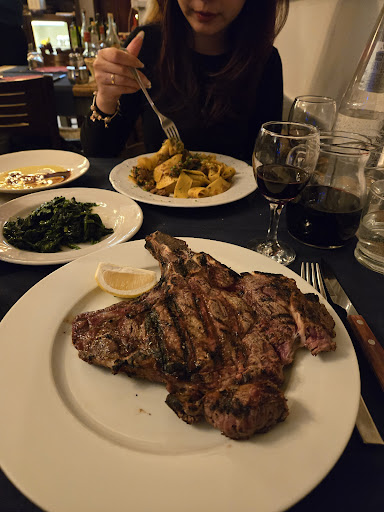 • The owner told us we’d get some bread with our starter but then completely forgot about it. I had to get up and remind him, about the bread and the water we also never got. • One of the main dishes came out in the middle of our starter, even though I had clearly asked for both mains to be served together — and they had confirmed this. • We ordered a bistecca alla fiorentina rare, but it arrived well-done. When we pointed this out, the excuse we got was: “The chef is tired.” They did bring out a second steak, which was cooked properly, but it tasted of a dirty grill and was clearly low-quality meat — despite the high price. The vegetables were also frozen and tasteless. • The staff spent most of their time chatting loudly and singing with a table of their friends, shouting across the restaurant and stepping outside to smoke every few minutes. They completely ignored the rest of the guests. • We overheard them making comments about us in Italian, thinking we couldn’t understand — it felt rude and unwelcoming. We even noticed other foreign guests looking uncomfortable and leaving quickly. • The owner was smoking behind the counter inside the restaurant, assuming no one would notice. • To top it all off, they added something to the bill that we never ordered. When my partner tried to explain the issue, the owner’s drunk colleagues started mocking us in Italian and one of them even shouted, “Just give me your money!” That was the moment we got up and left — deeply disappointed and honestly shocked by how we were treated.