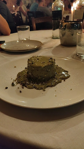 I was the only one to order the dessert and... well, the video speaks by itself. It was a chocolate mousse with pistacchio cream and a little sprinkle of crushed almonds.