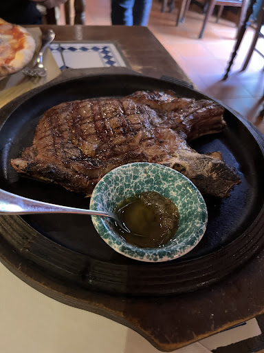 The food tasted just okayā¦not sure where people have been dining to say itās the best theyāve ever had and had to return š. Maybe they meant at this price, since food is priced fairly-ish and came out within 10 minutes of ordering. We ordered a bottle of water, pizza and steak (bistecca alla Florentina) and our total came out to $40 euro. We had been advised by several friends who visited Florence, that the bistecca alla Florentina was a must try while in Florence and to expect the middle to be pink. What we got was not too different than a normal t-bone steak that I would have picked up from Ralphs (local chain grocer)and cooked medium rare (not pink) myself. Mind you, I am not a great cook.