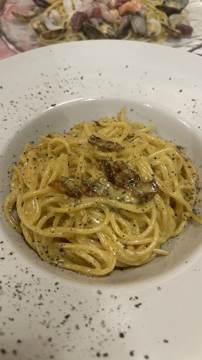 I ordered the carbonara, and my friend had the spaghetti with fresh clams and the fish crudités of the day. The pasta dishes were perfectly al dente. The carbonara was creamy, and the bacon was cooked to perfection. The fresh clams and fish crudités were incredibly refreshing, clearly made with high-quality, fresh seafood. We also ordered a tiramisu and were not disappointed at all.