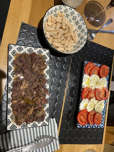 Our first dinner in Florence after a day of traveling and it did not disappoint. We came in around 10pm and were welcomed to sit down. They had variety of wines available you can tell they carefully picked each item on the menu. As a starter we got the caprese con bufala, very creamy and tomatoes were refreshing. As a main we opted for the peposo e fagioli, this was a braised stew that came with delightful beans, the beef was tender and had really good flavor and the beans added some great texture. We got the Podere dei Musi Bolgheri Rosso and it paired perfectly with our meal.