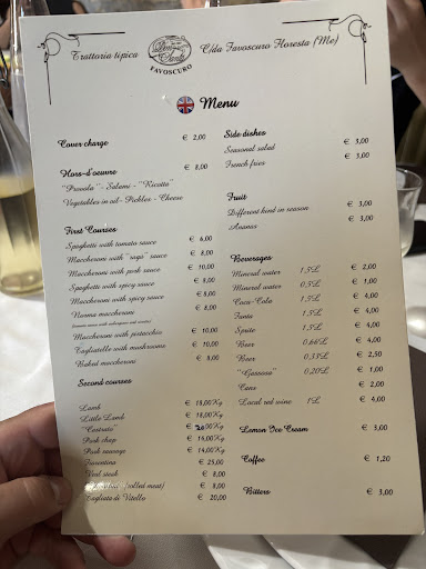Read moreYummy yummy yummy! If you really want proper authentic Italian/Sicilian food this is THE place to go!!! First you will experience a gorgeous drive through the mountains with such beautiful views. (I personally love going through the small towns where you can see things are built with Etna lava rocks.) So then you arrive at the trattoria (family owned), which is really well looked after, very clean and you can feel the authenticity. You are then welcomed by the lovely crew. It was hard to choose from the menu so we asked if it was possible to order a tasting/samples of starters,pasta and meat. It was also possible to get veggetarian food as well as meat (lamb is their speciality recommended if you eat meat!). Everything was so yummy! They make their own pasta which is also highly recommended and their cheeses are fantastic. Of course don't forget to try their wines as well and finishwith Limoncello of...