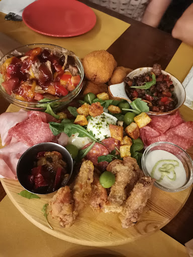Tagliere buono ed abbondante. Cocktail buoni e ben preparati. Servizio decisamente da migliorare: ci hanno portato da bere dopo 15 minuti ma abbiamo aspettato letteralmente 2 ore per il cibo, abbiamo ordinato un aperitivo per due (cocktail e tagliere 10 euro a persona) ma al momento di pagare ci dicono che l’offerta dell’aperitivo era terminata (???). Ribadiamo loro che al momento di ordinare avevamo chiesto di poterlo fare e ci avevano detto di sì ma percepiamo che non gliene frega nulla delle nostre legittime lamentele e quindi abbiamo dovuto pagare tutto separatamente. Dulcis in fundo sullo scontrino c’era pure una bottiglietta d’acqua ordinata ma mai pervenuta al tavolo (che ovviamente dopo averglielo fatto notare non abbiamo pagato). Dopo due ore di attesa mi aspetto un gesto cortese da parte loro e invece ci sentiamo presi in giro. Professionalità, correttezza ed onestà…. queste...