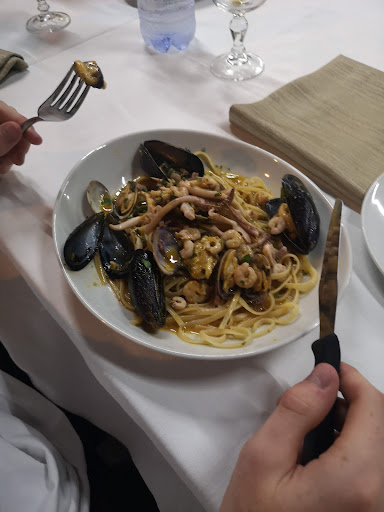 Read moreIl locale si trova si trova nei pressi di un incrocio che il sabato sera diventa un via vai di vetture rumorose che cercano attenzioni e questo credo sia l'unico aspetto negativo ma facilmente risolvibile in quanto vi è una bella sala interna e climatizzata. Ottimo il servizio della sorridente cameriera. Buona la cena in generale, forse sulle porzioni si potrebbe fare un po meglio, in particolare quelle degli antipasti. Forno a legna e pizze che vedevo passare davvero dall'aspetto ottimo...da testare. Per adesso posso dirvi che il sapore dell'antipasto di mare misto e delle linguine ai ricci è stato buono anche se avrei preferito che i ricci di mare non fossero cotti...ma questo dipende da come si intende la pasta ai ricci. In ogni caso è stata una buona cena. Torneremo per la pizza e per gli occhi della...