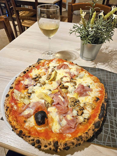 The pizza was surprisingly bland given the artichoke toppings I ordered, but the service was really friendly. Maybe just needed some more salt or olive oil. The house wine was so very strong. For dinner of pizza and wine, I paid 15 euros in June 2024, pretty decent deal. I think there are stairs to get in, so Im not sure about wheelchair...