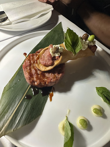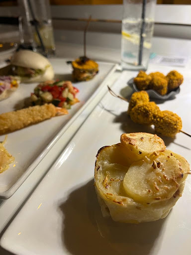 Read moreLa location è da 5 stelle: terrazza panoramica che sovrasta il centro storico della città, molto suggestivo. Tutto il resto guadagna a malapena il 'minimo sindacale'. Veniamo accolti da un'inquietante receptionist che, con un filo di voce appena udibile, ci indirizza al nostro tavolo. Avevamo prenotato e ci era stato inviato il link con il menù completo. Di solito in terrazza non si puo' cenare, ma ci è stato garantito il servizio menù completo tramite messaggio whatsapp. Quindi, ci accomodiamo e inizia la tragedia, nulla di quanto promesso, solo aperitivi & co. Il personale riesce a malapena a nascondere l'imbarazzo per delle scelte a dir poco 'fantasiose'. Praticamente vige la regola della 'fantasia dello chef': ordini quanto descritto sul menù scaricato tramite codice QR e ti arriva tutt'altro: ordinate 4 pinse vegetariane tutte diverse senza alcun preavviso, ma che chef fantasioso! A fine serata 'ciliegina sulla torta', si fa per dire: ci viene intimato di fare silenzio con modi molto sbrigativi che non si addicono assolutamente al tipo di locale e soprattutto al tipo di clienti: non siamo certo avventori da trattoria. Da lì a breve sarebbe iniziato il 'concerto' la cui durata sarebbe stata di 12 min. L'opera magna eseguita, nonostante gli evidenti sforzi del performer, ha avuto un unico risultato: l'abbandono anzitempo della location da parte di molti clienti, noi compresi e la narcolessia indotta ai pochi audaci rimasti ad ascoltare. In compenso il prezzo pagato per la degustazione indotta nostro malgrado è ampiamente al di sopra...