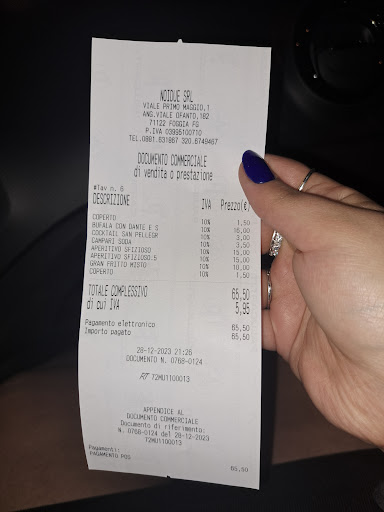 Read moreSono stata questa sera con il mio ragazzo nel locale in questione, già ci sono stata altre svariate volte occasionalmente, la penultima volta rimasi colpita dell'aperitivo, in quanto dentro foggia non sono il massimo, e sono ritornata questa sera. Incomincio col dire che la qualità-prezzo è alquanto sproporzionata poiché cara proprietaria, alquanto lei possa amaliare con le sue parole e si sa vendere ( sa vendere i suoi prodotto, preciso), il crudo della sella di Dante, tutto faceva forchè sciogliersi in bocca, ma mi ha spezzato le mani che una semplice bufala con 6 fette di crudo della sella di Dante (o cosa simile) me lo faccia pagare 16,00€, poi abbiamo preso un misto fritto che tutto era forchè km 0 come lei decantata, con specifica che le crocchette erano la tipica crocchetta che si compra al supermercato nel reparto surgelati, per un totale di 10,00€, 2 coperti 3,00€ come se stessi mangiando in un ristorante, ma per quello che io ricordo codesto è un bar. Cara proprietaria lei ha un bar/ tavola calda, non un ristorante stellato , in quanto le posso dire che almeno a foggia e provincia con la bellezza di 65,50€ si mangia a base di pesce o di carne,e Non pasta sfoglia e paninetti farciti di maionese e crudo o wustel in carrozza mini, non nominando alcuni locali in quanto inerme al settore, le consiglio vivamente di rivedere e ridimensionare il tutto o per lo più si apra un ristorante stellato, le si addice meglio per la sua meravigliosa parlantina e per lo stampo che lei vuole dare e per la clientela aristocratica che pagherebbe questi prezzi per un aperitivo/apericena/antipasto analcolico che spero riuscirà prima o poi a trovare in questo periodo storico. Per il resto buona fortuna, mi spiace, ma non tornerò volentieri. È inserisco la foto dello scontrino non per moda, ma per prova certa di...