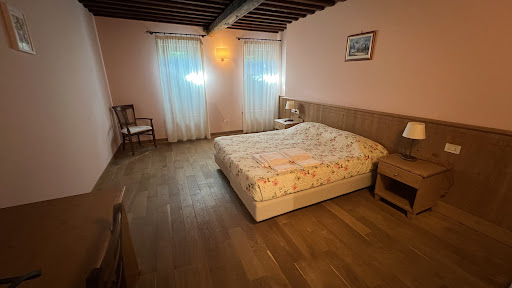Read moreAbbiamo soggiornato in questo agriturismo per due notti. Le camere sono ampie e confortevoli, pulite e con l'aria condizionata. Il bagno è anch'esso ampio, ma migliorabile con qualche piccola accortezza, come ad esempio sostituire il cestino della spazzutura a pedale e di metallo arrugginito con uno aperto di plastica o il mobiletto portaoggetti anch'esso arrugginito con uno uguale ma di legno o di plastica. Quello che non va proprio, se chiedete, come noi, una tripla, è il letto aggiunto: una brandina di fortuna a 20cm dal pavimento. Lo spazio per allestire un letto migliore non manca di certo, per cui nel complesso la sistemazione del terzo ospite della camera è del tutto insoddisfacente. Ma se nel complesso l'alloggio può anche essere valutato positivamente, quello che proprio non va è la colazione: arrivi, ti siedi e c'è il nulla. Poi ti viene portato un cappuccino con latte a lunga conservazione (in un agriturismo!) e un cornetto (se sei fortunato, invece del cornetto, una fettina di torta di mele, entrambi di probabile produzione industriale). La cosa più spiacevole però è vedere che al tavolo accanto hanno anche pane burro e marmellata e succo di frutta. Per 90 euro in formula B&B, la colazione è davvero inadeguata e il trattamento diversificato della clientela del tutto incomprensibile. Altra cosa da segnalare è che la struttura elenca fra i suoi servizi il wi-fi gratuito, ma in realtà la connessione ad internet è del tutto assente. Infine, durante tutto il soggiorno, non c'è mai stato chiesto se andasse tutto bene, o se volessimo altro (a colazione). Nonostante la disponibilità e la simpatia del proprietario, la gestione sembra essere molto più orientata all'enoteca che al B&B, peccato perché la location è molto bella e le potenzialità...