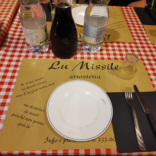 Non vi aspettate una location sofisticata! Nulla di ciò, ma un posto assolutamente semplice, originale, arricchito da suppellettili di vita personale come decorazioni...quello che importa è il cibo!! I tavoli, i piatti, i bicchieri non fanno parte di un unico servizio ma sono tutti spaiati e già questo ti dà un senso di originalità piacevole! Menù fisso. Siamo in 4 e ci servono subito 3 antipasti: tartare di vitello (favolosa!), piatto di salumi (fettina di crudo, capocollo, pecorino e melone cantalupo...gustosissimo!), ricottine al pistacchio, crostone con patata (buonissimo)...e il vino...rosso...intenso, corposo e fruttato, servito in caraffa.. veramente eccezionale! Segue piatto con braciola di vitello, salsiccia e 1/2 patata: è indescrivibile la bontà della carne...tenera, ben cotta, morbida e succosa...poi la tagliata...cottura media (su nostra richiesta) supereccellente. Siamo pieni come un uovo, ma Lu Missile ogni tanto ci somministra pezzi di carne da assaggiare...Dimenticavo.. La musica...la cena è accompagnata da musica rigorosamente italiana degli anni '80/'90: Rino Gaetano, Pupo, Pooh, Califano... Amarcord!!! Grazie Missile per la...