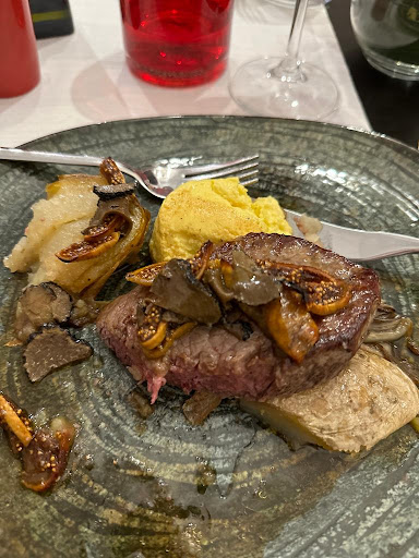Really special restaurant, must visit! This place changed my bad mood to perfect today evening:)) Food is really delicious: pasta with trufels, bacon and some special sauce, was very good, artichoke salade - not bad. But really fantastic was eggs (uovo al forno su crema, tartufo...!!!) - it was so tender, melts in the mouth, so tasty.... and meat with pear, tartufo, figs, medium rare...and so good:)) We were really full, but it would be so pity not to try the desert:)) Thanks to very nice girl Caterina, who served for us, and helped us with choosing dishes, and nice guy from kitchen we choose Pana-kotta with berries - delicious and very light !!!