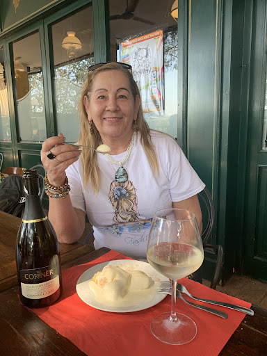 Read moreIl locale non è facile da trovare, però all'interno è molto carino e caratteristico, con l'atmosfera tipica di un pub. Il cibo è un po' una nota dolente: il fritto misto era composto praticamente solo da patatine fritte, con un paio di olive ascolane e mozzarelline, e mezzo wurstel tagliato; il pane dell'hamburger si era indurito ed era poco appetitoso; nulla da dire sulla carne, ben cotta e di buona qualità. Ottima e varia la scelta di birre alla spina, alcune di difficile reperibilità. Siamo capitati qui mercoledì, in corrispondenza della serata quiz; purtroppo il volume in sala era parecchio alto, ostacolando le conversazioni e, a causa dell'affollamento, il servizio non è stato molto solerte. Merita comunque almeno...