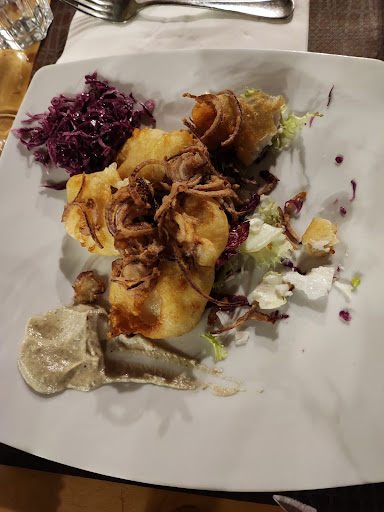 Read moreBuongiorno a tutti, Ci siamo recati in questo ristorante domenica 31 ottobre 2021. Direi che dovono impegnarsi un pochino di più nella ristorazione, nell'igiene e nel riscaldare adeguatamente il locale. Il locale era oggettivamente freddo. L'antipasto povero e scarso, tuttavia il cibo usato è stato buono. Baccalà fritto con verdurine, buono, ma era giusto un assaggino senza parlare delle verdure che in realtà erano solo esclusivamente cipolle. Ravioloni con un sugo di pomodoro che non era cotto ed era acido. Siamo stati male di stomaco per tutta la sera. Il prezzo esageratamente alto per il luogo in cui si trova il ristorante. La mamma dello chef non riesce ad usare il pagoBancomat chiama il figlio che esce fuori dalla cucina con le mani sperche di qualcosa di giallo, digita il prezzo e subito dopo se ne va in cucina con le sue mani ben condite. Nessuno ci ha salutati. Woow Che dire... Non ci siamo. Non basta avere il cappello da chef per essere un bravo cuoco. Un...