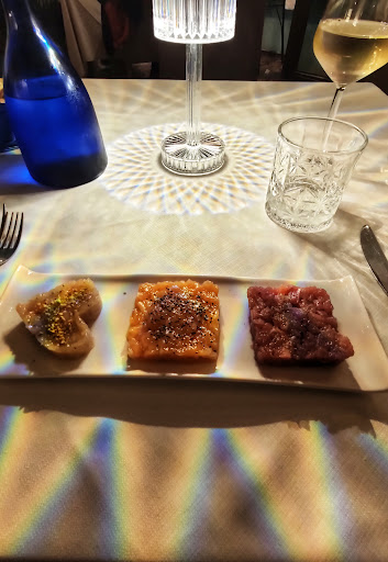 Read moreIl Ristorante, situato in centro lungo Via Garibaldi a Foligno, si presenta con un arredamento elegante e ben curato restituendo un atmosfera di tranquillità e relax grazie anche alla musica soft di sottofondo. Per quanto riguarda la cena, abbiamo ordinato un antipasto Mare e Monti e un altro Sapori sul Tagliere. Abbiamo proseguito con una porzione di ravioli zucca speck e burrata e una tagliata di Scamone su letto di rucola e scaglie di grana e aceto balsamico. Acqua, un calice di vino Rosso e due caffè come bevande. Tutti i piatti erano buonissimi e ben preparati. Veramente gustosi. I prezzi sono decisamente equi considerando la qualità delle portate, il rapporto qualità/prezzo quindi è buono, inoltre il servizio è stato sempre efficiente, professionale e di grande cordialità. Quindi un bel locale in cui mangiare bene e trascorrere momenti di condivisione. Sono rimasto molto soddisfatto e sicuramente ci tornerò....