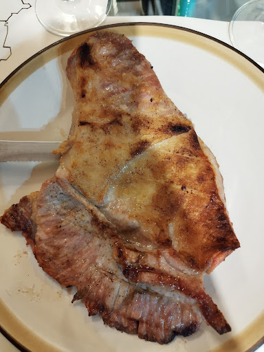 Praticamente ci siamo andati a sbattere venendo dal grande parcheggio fuori le mura, e fortunatamente direi. Abbiamo prenotato visto che ancora doveva aprire e il tempo di una passeggiata in centro e ci siamo seduti. Abbiamo potuto scegliere la saletta piccolina sulla sinistra dell'ingresso, decisamente più intima e lontana dai rumori delle tavolate più grandi, anche se nella sala principale c'è un bellissimo spazio dove grigliano a vista le varia carni di pregio del menu. Noi però volevamo più località, quindi abbiamo scelto il piccione che loro hanno messo magistralmente all'interno di un raviolone in forma di salmì saltati con burro, le tagliatelle al ragu di pecora (anche queste mammamia...stupende), che lumache ai carboni -dal sapore eccellente-, e la guanciola di vitello al sagrantino che si scioglieva in bocca, e il sagrantino si avvertiva benissimo. Cosa che apprezzo sempre tantissimo, la stessa cura viene messa nella scelta dei contorni...non avevo mai assaggiato l'insalata di rapunzoli, buonissima! stessa cosa dicasi per le più classiche verdure, ma al forno, non le solite alla griglia o gratinate che hanno rotto, in questa stagione erano zucca, cipolla, indivia, radicchio, nella loro semplicità saporite e veramente buone. Ci hanno lasciato a tavola un olio veramente buonissimo, il metelli, e abbiamo bevuto due calici di vino suggeriti dalla titolare, azzeccatissimi. I prezzi sono più che giusti, certo se si scelgono carni pregiate anziché i piatti da noi scelti, i prezzi andranno a salire....
