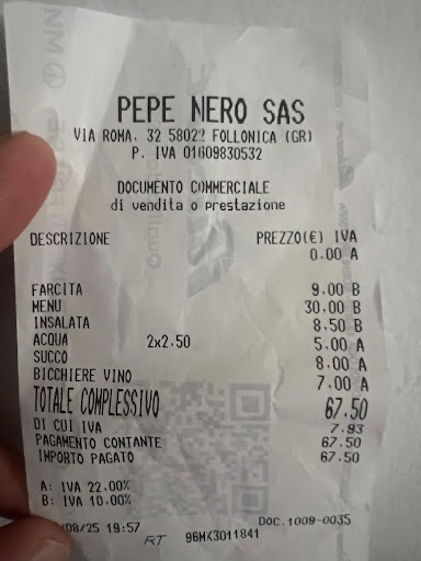 Read moreClassic Tourist Rip-Off! I went to a pizzeria "Pepe Nero" with my family – a typical holiday aria. The place was a complete disaster: cardboard plates, disposable cutlery – and worst of all, you get blatantly ripped off. We ordered two kids’ burger menus, clearly listed on the menu at €8 each. When the bill arrived, there was suddenly a charge for “Menu €30.” When we asked, the answer was simply: “The burger bun costs extra.” No prior warning, of course.