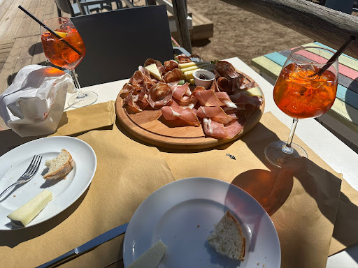 Der Service war nicht übermäßig, obwohl es nicht voll ausgelastet war. Der Mann hinter dem Tresen war jedoch freundlich und hat gute Getränke gemacht. Wir würden auf jeden Fall noch einmal kommen. Unter den Pinien war es toll: angenehmer Schatten und eine frische Brise um die heiße Mittagszeit, mit perfektem...
