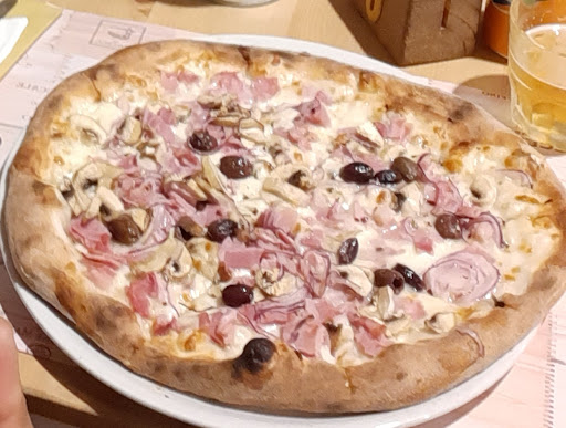 Caminando por la zona nos topamos con esta pizzería por casualidad y, viendo que tenía buenas opiniones nos paramos a cenar. No pudimos tomar mejor decisión. Un local simple con una terraza y varias mesas a la entrada, con más mesas en el interior y, sobre todo, un magnifico horno. Es un sitio donde nos dio la impresión que habitualmente no pasan muchos turistas, pero la atención fue inmejorable. Aun sin tener reserva y llegando de improviso, nos colocaron en la terraza incluso estando casi todas las mesas ocupadas. Para empezar, pedimos unos entrantes típicos como suplì y olive ascolane, y nos recomendaron también unos “mini arancini carbonara” que tenían recién hechos y la verdad que estaban buenísimos. Para completar, viendo el horno del interior y a las mesas que teníamos alrededor, pedimos unas pizzas que en absoluto defraudaron. Nosotros nos decantamos por clásicas margheritas pero tenían buena variedad y, sobre todo, a muy bien precio. Pueden ser de las mejores pizzas que hemos probado últimamente, incluso en locales de más fama (y precio). A la hora de pagar la cuenta nos llevamos una grata sorpresa, ya que en relación calidad precio es difícil encontrar algo mejor. Si otra vez volvemos por la zona sin...