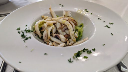 Per l'antipasto la nostra scelta è caduta su una julienne di seppia e un polpo alla luciana.