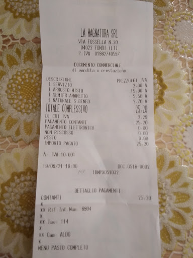 Read moreFacevo prima a leggere Guerra e Pace che a farmi arrivare un antipasto ordinandone 4. Perfetto per Ulisse...peccato che l’Odissea preveda un lieto fine... Camerieri impreparati e sempre in ritardo, cucina scadente, disorganizzazione di sala senza rivali, piatti parchi e poco gustosi. E soprattutto la Truffa finale: il conto “modificato” su cui ci hanno fatto pagare 2 antipasti su 4 (arrivandone solo 1, e nemmeno completo, parliamo di antipasti da 18€...), 3 primi giusti (arrivati con tempistiche alternate, così da far mangiare uno per volta i commensali) e poi uno extra costo aggiunto presumibilmente per compensare la perdita economica, quando per onestà avrebbero dovuto far pagare la metà, vista la tortura culinaria affrontata. Altri tavoli invocavano alla candid camera, con ospiti che ricevevano contemporaneamente dolci da un lato del tavolo e fritti dall’altro. Inqualificabile. Una vergogna senza pari che non auguro nemmeno al mio...