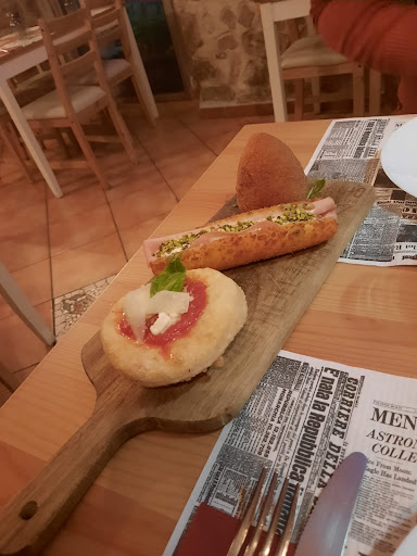 Read moreCapitati per caso in questo posto un po' nascosto ma comunque in centro (premessa, noi siamo di Latina capitati a fondi per una serata diversa dal solito). Ci ritroviamo immersi in un locale piccolo ma ben curato e ben addobbato per le feste natalizie. Menù chiaro e vario: noi abbiamo preso montanara, arancino e crocchettone pistacchio mortadella e stracciatella. I crocchettoni li fanno di tre gusti, montanara gustosa mentre l'arancino e nel caso anche la frittatina di pasta variano in base al giorno. A noi un buon arancino con melanzana a funghetto all'interno. Insomma, posto adatto se non volete i soliti fritti, e anche le bruschette sono particolari, ovvero fatte con impasto della pizza. Arriviamo quindi al pezzo forte: LA PIZZA. Pizza gourmet con una salsa di zucchine squisita abbinata a pomodori secchi e fiori di zucca. Piacevole il gesto di togliere dal prezzo della pizza la ricotta (meno un euro) accogliendo la richiesta del cliente rimuovere un ingrediente dalla pietanza. Altra pizza la saporita, con funghi, speck, scamorza e mozzarella... nome più adatto non poteva esserci, gustosa e che si scioglie in bocca. Servizio veloce, gentile e accogliente. Totale di 36 euro in 2 compreso di servizio (1 a testa), acqua e coca Cola. Prezzi delle pizze onesti e non alti, rapporto qualità prezzo altissimo. Da Latina torneremo volentieri a Fondi per mangiare...