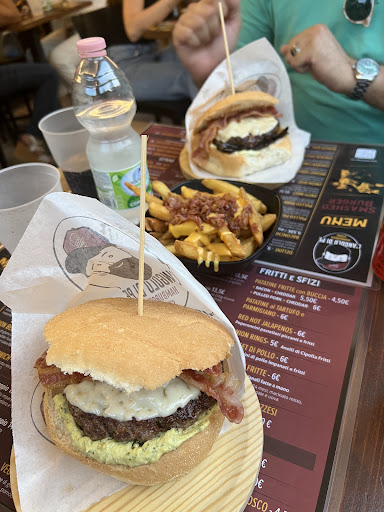 Read moreIo e il mio compagnavo avevamo voglia di panino, abbiamo cercato su Google maps una paninoteca in zona e abbiamo scoperto questo posto piccolo ma ricco di sorprese e gusto!!!!! Non siamo della zona, ci siamo trovati li per un evento e sicuramente torneremo per mangiare in questa hamburgeria! Il posto è molto piccolo e i tavoli erano già tutti prenotati, era un venerdì sera. Sono stati molto gentili da farci accomodare a patto che avremmo lasciato il tavolo alle 9. Che dire di questi ragazzi? Sono veramente forti, hanno un menu molto variegato con accostamenti ricercati, io ho preso un fuori menù; il Nerano con crema di zucchine, una goduria spaziale molto delicato e pulito come sapore. Il mio compagno invece ha preso quello con la parmigiana di melanzane, anche a lui è piaciuto tantissimo. La carne è veramente buona, come anche il pane. Abbiamo infine preso le patate con cheddar e bacon; saporitissime. Sbirciando gli ordini dei tavoli vicini abbiamo visto che anche le polpette meritano, la prossima volta le prendiamo! Ho dato 4 stelle all’ambiente perché molto piccolo per il livello dei prodotti. Meritano un posto più grande! Fanno anche asporto e il rapporto qualità prezzo è ottimo, se date un’occhiata alle tovagliette potete vedere i prezzi e le varie taglie dei i panini (hamburger singolo o doppio) il singolo è già tanta roba! Ci torneremo...