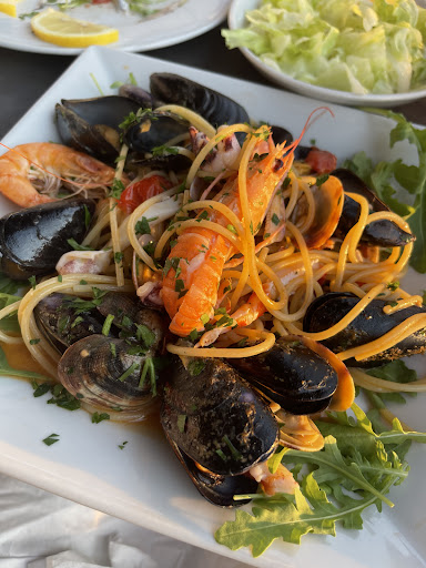 Nice restaurant with a modern feel, looks like they've had a makeover if you look on Google Maps. Everything is neutral colours and fresh. Nice seating area outside directly overlooking the beach. Several regulars in, always a good sign. We had a mountain of food including bruschetta, a pasta course plus a second meat course. Too much really! Everything was freshly made and tasted great. We also managed to find a sweet wine that my wife enjoyed, which we have not found anywhere else. Total bill was €45 which was bonkers...