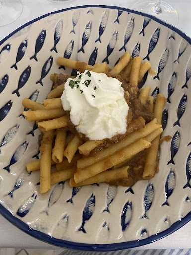 I piatti? Una meraviglia! La catalana di sgombro è un’esplosione di sapori, le polpette di pesce con panatura segreta sono irresistibili, mentre la zuppetta di ceci, bieta e baccalà è un abbraccio caldo e delicato. Gli ziti alla genovese di tonno sono pura poesia, i miei preferiti! Ma la vera sorpresa è stata la new entry: tortelli con ripieno di spigola, succo di limone e scaglie di parmigiano assaggiati al cenone di capodanno!