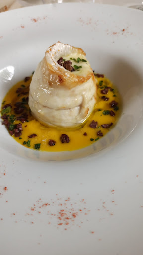 Read moreRistorante immerso nel verde con ampi spazi interni ed esterni a pochi minuti da Formia. Abbiamo prenotato con The Fork per due persone e la prenotazione è stata subito accettata. Avevo anche fatto richiesta di un tavolino riservato in quanto era un'occasione speciale per me e mia moglie ed il titolare la subito accolta senza problemi. Appena arrivati lo staff ci ha subito accompagnati al tavolo e servito dell'acqua. La proposta di menù era completa sia di carne e pesce. Abbiamo iniziato con due menù antipasti misto mare che comprendevano degli assaggi di caldi e freddi. Presentati bene e devo dire anche gustosi. A seguire abbiamo preso due primi, uno spaghetto al peperoncino aglio, olio e frutti di mare e un tortello bianco dello chef (proposta fuori menù presentata dal titolare che mi ha incuriosito). Era un tortello bianco con ripieno di burrata e acciughe servito su un brodetto di vongole veraci e salsa al prezzemolo. Sia io che mia moglie siamo rimasti soddisfatti anche di queste due portate, e quando anche la pasta sà di pesce allora il piatto è ben riuscito. Complimenti allo chef. Tutto poi è terminato con un sorbetto al limone (versione gelato accompagnato da dei biscottini secchi) e una deliziosa millefoglie alla crema chantilly e cioccolato. Due caffè ed il conto in linea con quanto mangiato considerando anche una bottiglia di vino Falanghina locale.