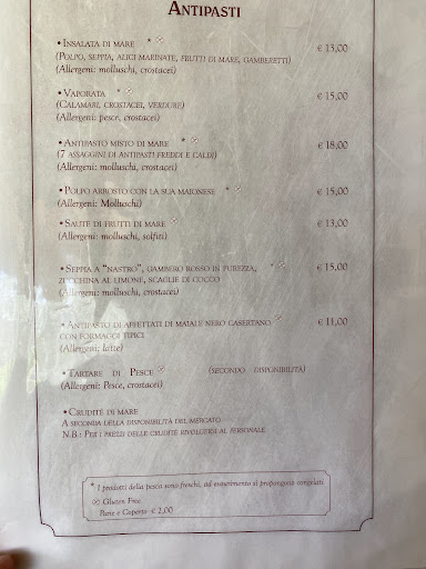 I must say that this is a fantastic place to eat with a sommelier on site, and there are wines from every region in Italy. There are also 1/2 liters of wine, very reasonably priced. Everything on the menu was a good choice that I liked making it difficult to decide what to get. Everything we ate was absolutely delicious. The place was a bit out of the way, and in the summer possibly challenging with the beach traffic. But, in November it’s wonderfully available and not crowded! I’m planning on coming back! They are also part of the “The Fork” App making it great! I’m attaching some “samples” of the menu for ideas on pricing which are very reasonable for the top quality...