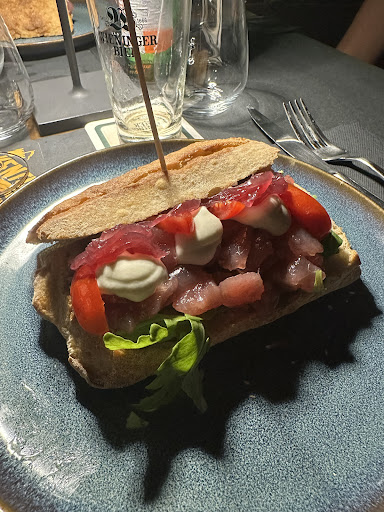 Panino superlativo Sono stato con famiglia il 18/08/2023. Location molto curata, interior design di classe, bella terrazza esterna. Servizio di livello , camerieri con ottima conoscenza del menu e molto gentili. Panino di mare “Mola” fatto con ciabatta dal crunch ideale, tartar di tonno eccellente. Top 🔝 Panino di carne “Cicerone” con scottona marchigiana e gorgonzola, erano anni che non mangiavo un panino così, il più buono che abbia mai mangiato, ottimo balance di gusto e leggerezza. Birra doppio malto e rossa di ottimo livello. I miei complimenti 🙌 sia per il servizio di sala che per la cucina. Unico piccolo errore che consiglio di correggere : tra una portata ed un’altra vanno assolutamente sostituite le posate e non si chiede all’ospite se vuole mantenere quelle già...