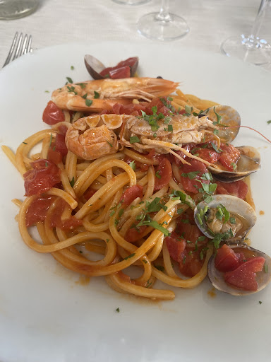 SCONSIGLIATISSIMO. Innanzitutto luogo abbastanza datato anche come estetica sala e servizi igienici. Ci sono stato con 3 amici una domenica a pranzo senza aver prenotato. Naturalmente ci siamo seduti solamente quando si è liberato il primo tavolo da 4 ed erano circa le 15.30. Camerieri frettolosi nel chiedere l'ordine tutto in una volta (antipasto, primo, secondo). Capisco l'orario ma sarei stato più felice se fossero stati chiari dicendomi che era tardi per un pranzo. Passiamo alla parte più importante: la qualità del cibo. Antipasto di insalata di mare fresca con qualche insalata di mare di qualche settimana, dato che lo ''stesso'' polpo aveva alcuni pezzi belli sodi, altri mollicci. Primo a base di linguine all'astice che già all'apparenza non avrei nemmeno assaggiato. Pasta viscida (non mantecata con il resto del condimento) e tra l'altro anche scotta dato che il tutto era quasi una poltiglia. Assaggiato e non più toccato. Secondo a base di frittura di calamari (pochissima scelta sul menù) praticamente insapori e probabilmente anche surgelato e di bassa qualità. Provo ad assaggiare anche un altro secondo a base di zuppa di pesce composta da cozze insapori e piccolissime, tentacoli di polpo molli e stracotti, scampo insapore e tantissimi pezzi di anguilla probabilmente derivate da rimanenze del cenone di capodanno. Vino di media qualità. Pagati circa 50€ a testa (rapporto qualità-prezzo bassissimo) per 4 antipasti, 3 primi, 4 secondi e due dolci (un gelato cristallizzato e dei profitterol che non posso giudicare non avendoli assaggiati). Potrei giustificare il tutto con l'orario forse? Come detto prima se mi avessero detto che era troppo tardi per il pranzo avrei mangiato un panino al McDonald e avrei aspettato la sera per una cena migliore. Sicuramente non ci ritornerei. 1 stella perchè, purtroppo, meno non...
