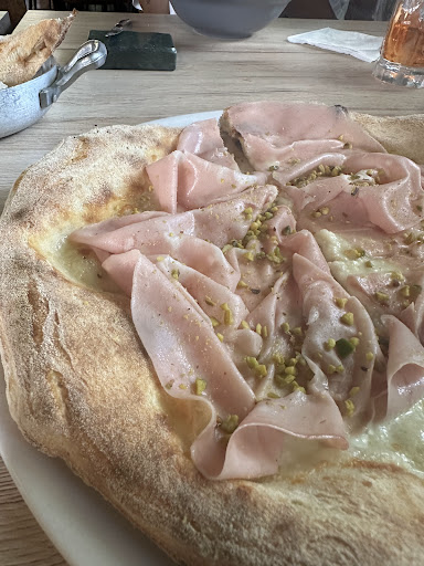 Abbiamo prenotato per pranzo, pertanto non posso giudicare le pizze in quanto non disponibili. La qualità delle materie prime è molto buona e le realizzazioni anche. La presa di maiale iberico era secondo me davvero poca, sei trancetti con sei rondelle di patate, seppure la qualità della carne fosse ottima. La Gricia l'ho trovata un po' troppo asciutta. Tutti gli altri piatti erano buoni e nelle giuste proporzioni. Dolci molto buoni, da provare la "tetta della monaca" e la coppa gelato. Il locale è accogliente, forse un po' freschetto e in certe posizioni il sole è abbagliante e non sono presenti tendaggi, ma tutto sommato carino e ben curato. Magari qualche ragnatela da togliere, e un aggiornamento ai bagni sarebbero auspicabili. Il servizio è gentile e puntuale, ma i tempi di attesa per i primi sono biblici, fuori misura, quasi 50 minuti di attesa sono ingiustificabili. Purtroppo non è stato un caso solo del nostro tavolo, ma un comune problema con gli altri commensali. Tuttavia daremo sicuramente un'altra possibilità perché comunque era tutto buono e con...
